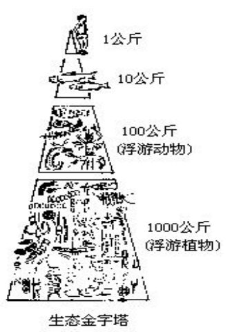 在生态系统中,能量从植物体内转移至草食动物体内时大约为总能量的1/10,而再转移到肉食动物体内时,为草食动物能量的1/10左右。一般说来,能量沿着绿色植物→草食动物→一级肉食动物→二级肉食动物逐级流动,而后者所获得的能量大体等于前者所含能量的1/10,这就是说,在能量流动过程中,约有9/10的损失掉了。
