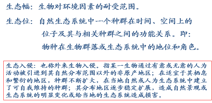 种群:栖息在同一地域中同种个体组成的集合体,占有一定的空间的、具有潜在杂交能力和自己独立的特征、结构和功能的整体。