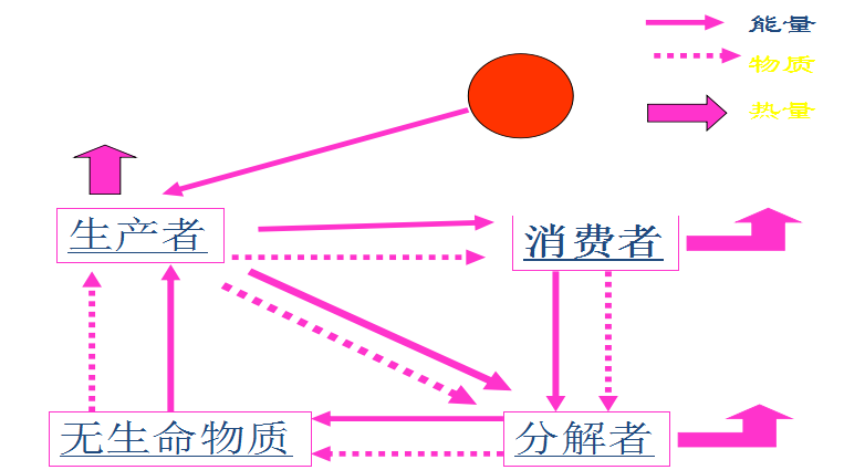生态系统中全部生命活动所需要的能量均来自太阳。太阳能在生态系统中的流动是按热力学定律进行的。热力学第一定律告诉我们:“在一个封闭系统中(我们通常把以地球为中心包括太阳在内的宇宙环境看成是一个封闭系统),能量和物质是不能产生或消灭的。即能量和物质不能凭空产生也不能凭空消亡”。