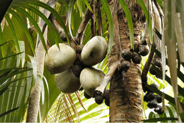 海椰子是塞舌尔普拉兰岛及库瑞岛的一种特有棕榈。果重可达25公斤,是世界上最重的坚果,海椰子果实虽可随海水流走他乡,却不能在异地定居。由于整座树庞大无比,所以也被称为“树中之象”。