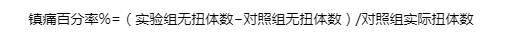 4.观察10min内出现“扭体反应”的小鼠的数目,记录。计算镇痛百分率。