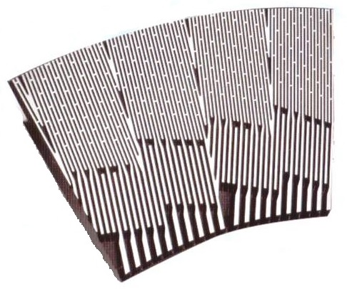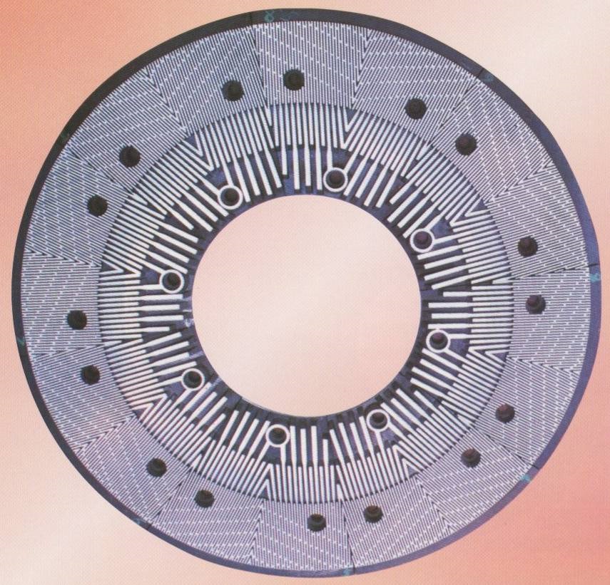 磨片是直接起到研磨作用的工作零件,用螺钉固定在磨盘的端面上。大型热磨机都采用组合式磨片。由于转动磨盘是高速旋转的部件,故要求有磨片较高的动平衡精度。
