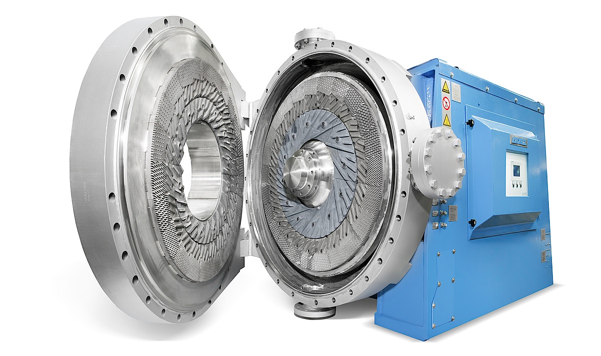 为提高产量,目前热磨机均趋于大型化,其研磨动力普遍在2000kW以上,常用的48~54英寸热磨机,其配备的电机功率一般为3000~5000kW,最大已达到12000kW(磨盘直径72英寸)。