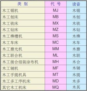 类代号即木工机床分类代号,见表2-1。