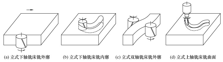 主要对零部件进行曲线外形、直线外形或平面铣削加工(如图8-1);采用专门的模具可以对零件进行外廓曲线、内封闭曲线和外形轮廓的仿形铣削加工;此外,还可用作锯切,开榫加工。