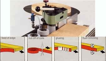 板式家具零部件边部处理方法主要有4种,包括涂饰法、镶边法、封边法和包边法,而封边法和包边法又是现代板式家具生产中零部件边部处理的常用方法。封边法是用薄木(单板)条、木条、三聚氰胺塑料条、PVC条、ABS条等压贴在零部件的边部。