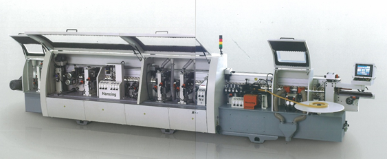 随着木材综合利用水平的提高和家具市场需求量的不断增加,板件封边技术也在不断地改进,封边设备也有了很大地发展。当前,连续式封边机采用机械化、自动化、连续化封边技术,采用多工位联合机床,并可排入部件加工自动线,是目前国内外广泛采用的封边设备(图9-5)。