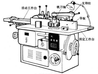 立式单轴木工铣床主要由床身、固定工作台、主轴部件、活动工作台、导板及防护装置等组成,见图12-2。