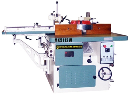 MX51系列立式单轴木工铣床,该型铣床常见型号有MX519、MX5112(外观如图12-1所示)等。该机主要用于工件各种沟槽、平面和曲线外型加工,板材、方材的端头开榫、拼板的槽、簧加工。