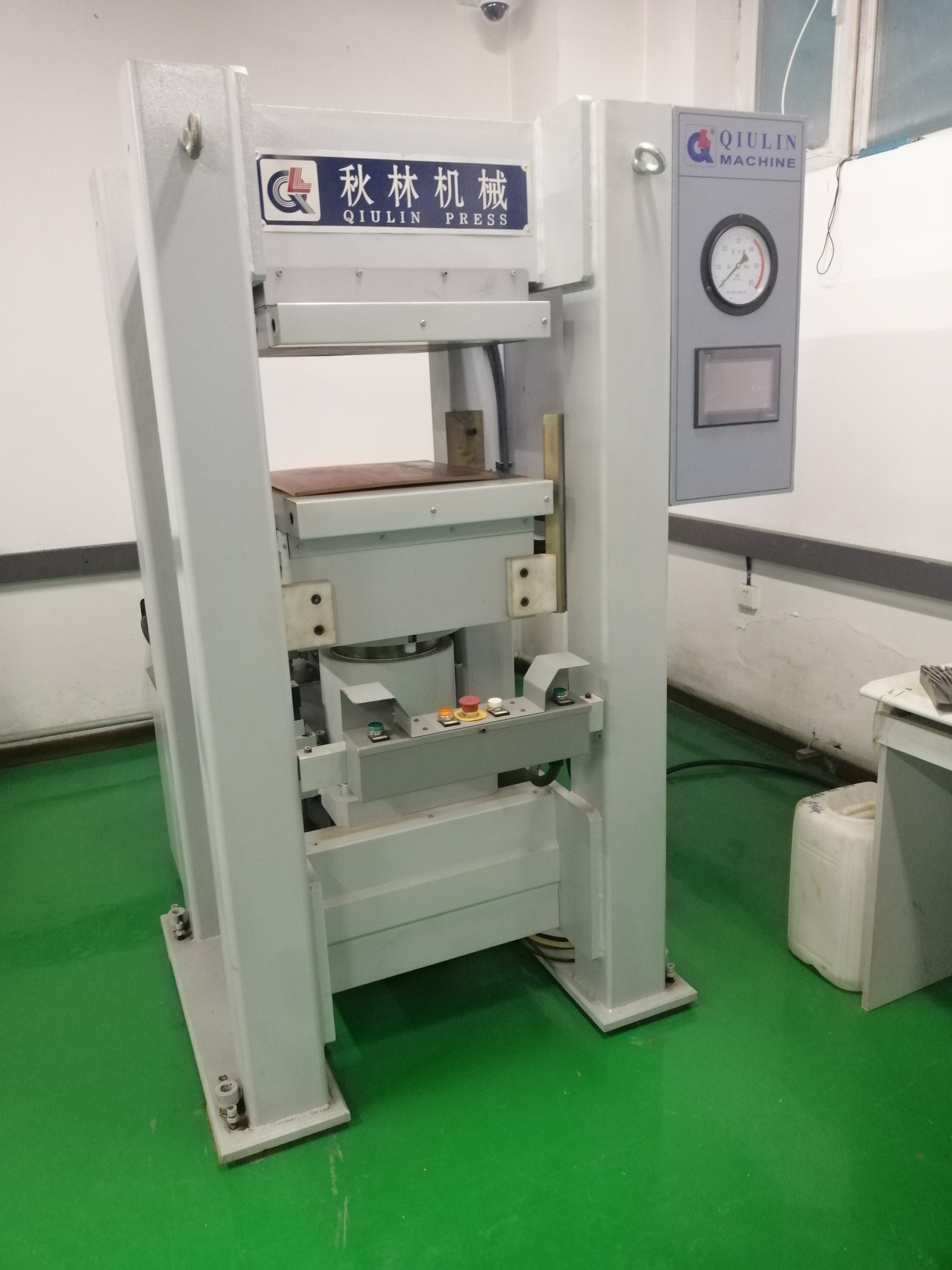 BY101X1/10型实验热压机是机械设计制造及其自动化专业定制的实验设备,主要用于人造板生产中工艺实验。该机采用上压式结构,热压板采用电加热,幅面为500mmX500mm。该机结构上可分为机架、热压板、加压油缸、液压系统及控制系统等几个部分;采用PLC控制,可通过触摸屏对实验板材进行三段式加压和加热,可自行设置加压压力、加热温度和时间,以便获取更好的生产工艺参数。