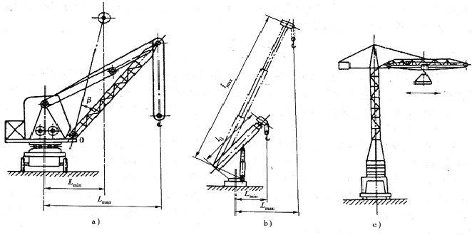 根据变幅机构的变幅方法,变幅机构可以分为两种基本类型:载重小车变幅和动臂变幅两种(图3-14)。