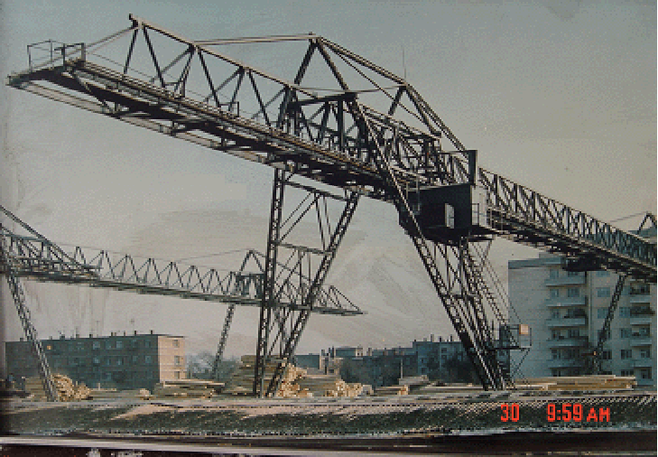 林业起重机械与工程用的一般起重机械的结构大体相同,只是由于林业起重机械的主要作业对象为木材,其长度直径比相对较大,在起重过程中不利于装夹。因此在设计林业起重机械的取物装置时应重点考虑以上特点。图3-8是一种装卸桥结构的林业起重机,用于木材的搬运和装车。