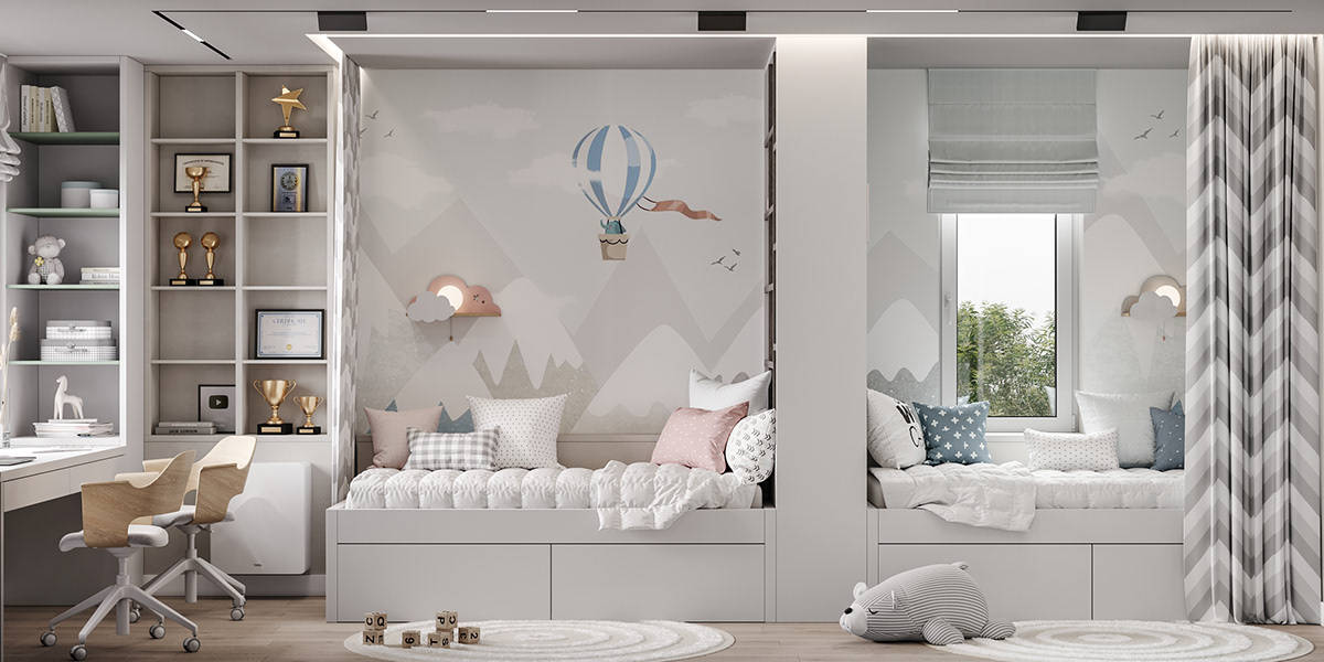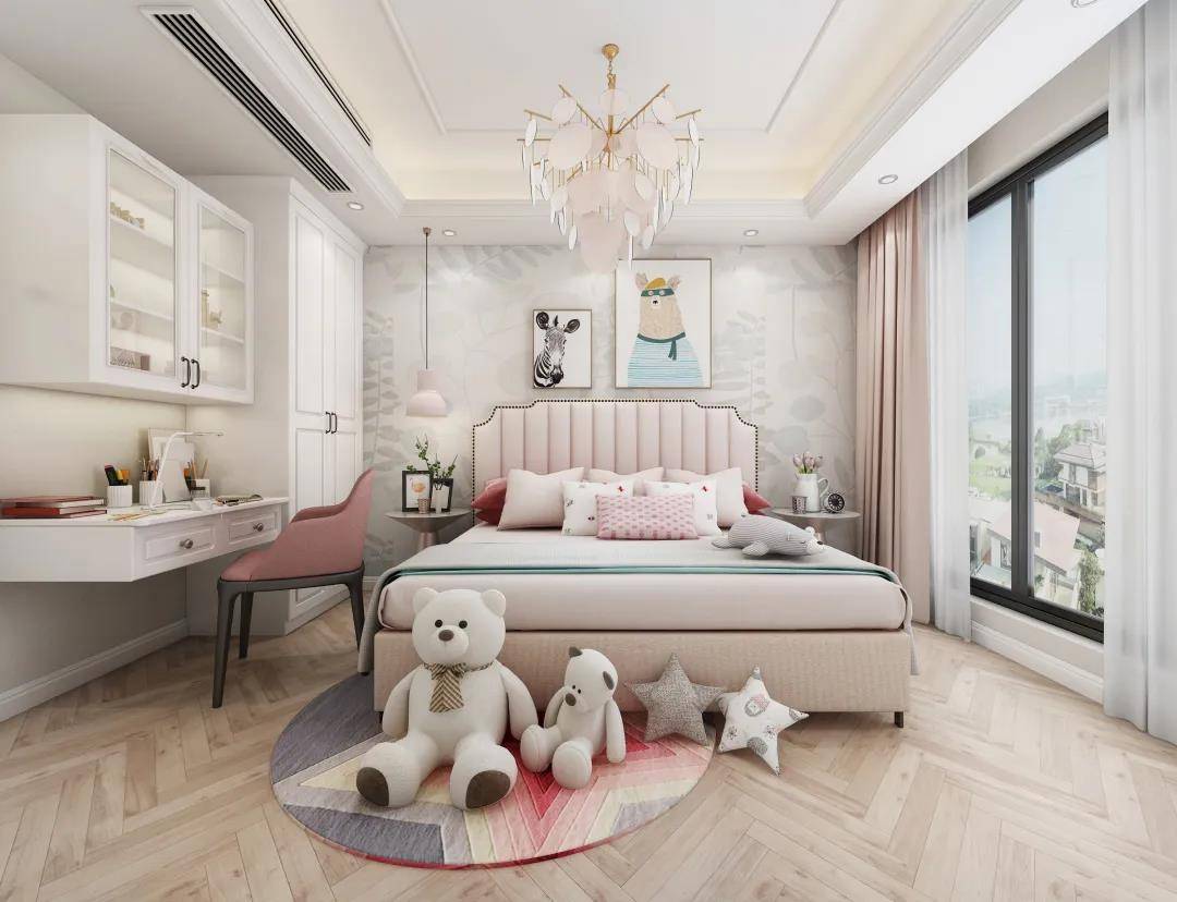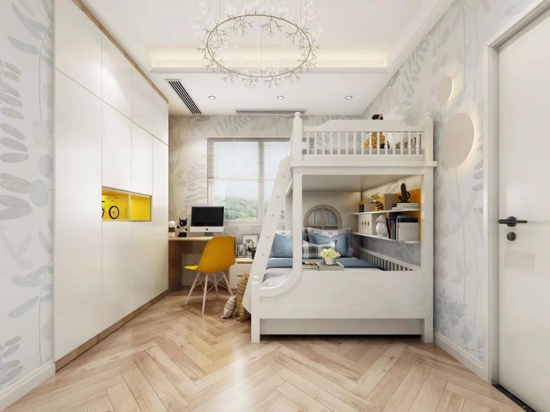 孩子们活泼好动,对危险感知也不足,所以他们的房间最好选择圆润的设计方式。如果碰到坚硬的尖角,也可以选择贴泡沫防撞角来保护;同时对于储物柜要做好固定的工作,以防倾倒带来的危险。