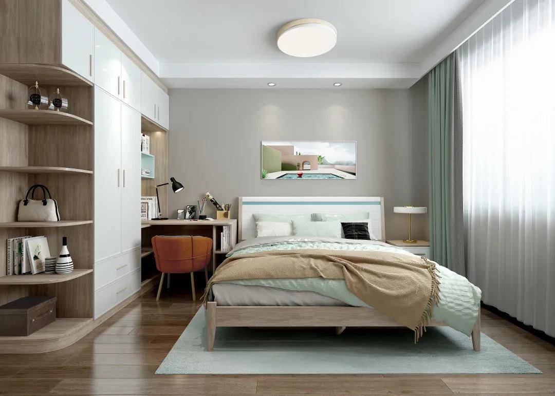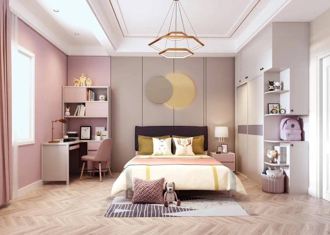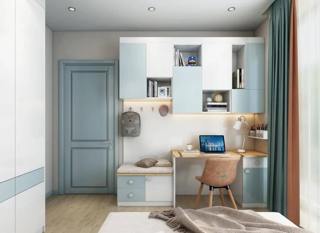 繁杂的颜色容易导致孩子注意力分散,过于艳丽的色彩让孩子长期处于亢奋中,导致睡眠质量较差。小帝建议青少年的房间整体色彩以宁静素雅为主,尽量选择三种以内能舒缓视觉疲劳的搭配色系,比如鹅黄色、浅粉色、淡蓝色等。