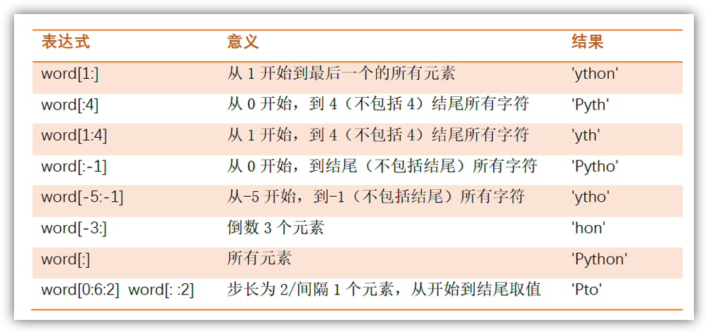 字符串(string)是由多个字符(character)组成的集合,就好像是许多的字符按顺序排成了一队,可以使用索引(indexed)操作从一组字符中截取一个或一段字符。Python使用带下标数字的中括号[index]作为字符串的索引(或者称之为下标,subscripted)操作,从左至右,第一个字符的索引下标为0,最后一个字符的下标为字符串长度减去1。因为获取字符串的长度可以使用函数len(str),因此,字符串索引下标的最大值为len(str)-1。索引也可以从右至左的方向进行,因为-0和0相等,所以,从右边开始计数时序号从-1开始。我们可以下面的示例中理解其含义: