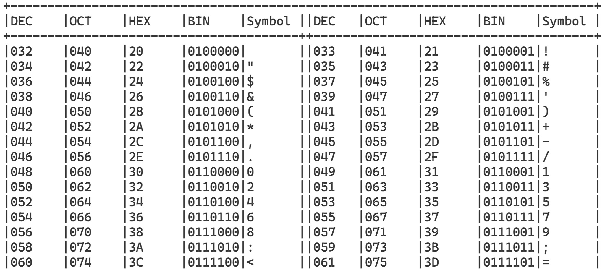 凯撒密码非常容易设计,那我们怎么样在电脑上编写程序来实现了?计算机可以用ASCII来表示字符,借助ASCII表,可以方便的编写计算机程序来实现凯撒密码的移位加解密。为此,在正式开始使用恺撒密码加解密诗句之前,我们先完成打印ASCII表的任务,如下图所示。需要注意的是,凯撒密码非常容易破解,是很不安全的密码。