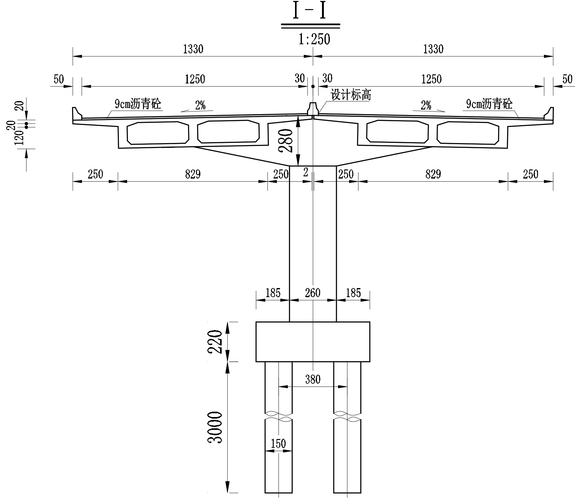 石大路高架桥15跨,边跨为15m,其他跨均为30m,下部结构为桩柱式桥墩,桩柱式桥台,其他6、7号桥墩立柱为异型柱,上部结构为箱梁,根据1-1-1系列图纸,完成高架桥的建模。