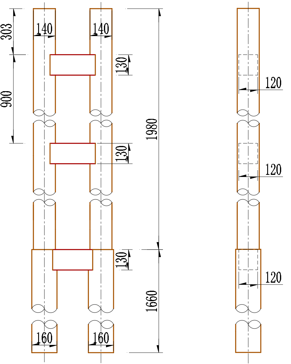 在完成高架桥的标高轴网后,载入高架桥各构件,逐一将各构件进行组拼,完成高架桥的创建。