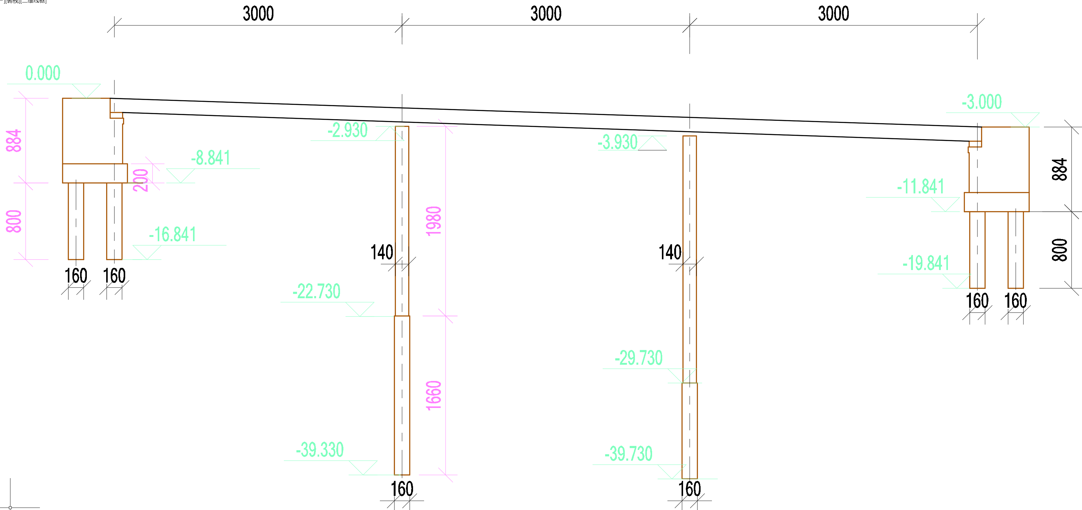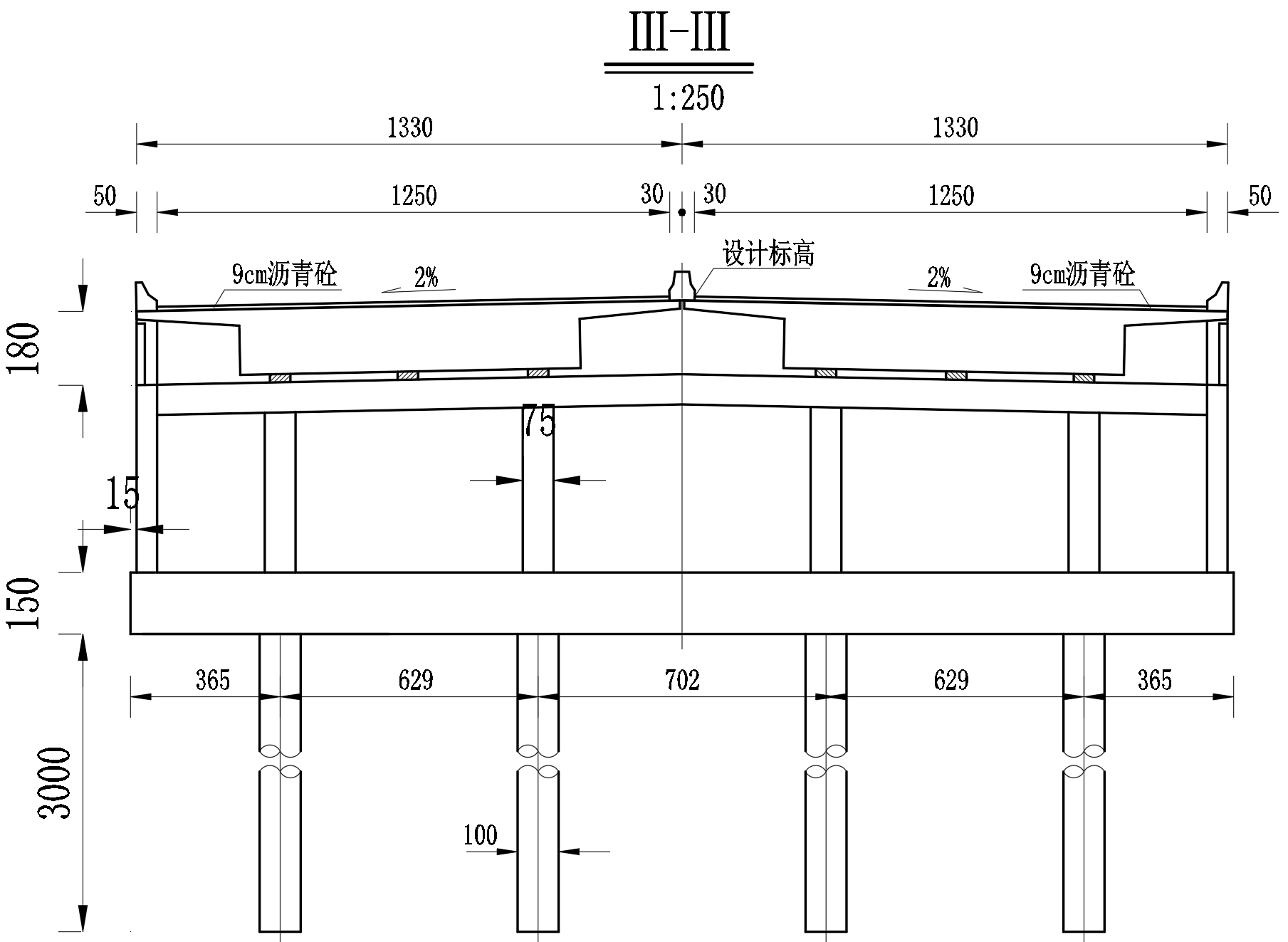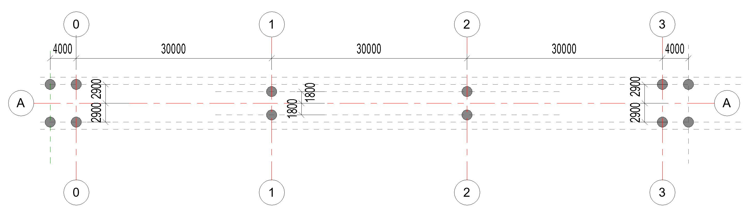 根据立面图绘制轴网及参照平面定位桩基、桥面板的宽度尺寸。