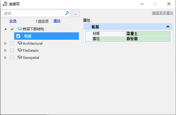 定义完属性后,利用“连接项”工具命令对元素赋予相应的属性。