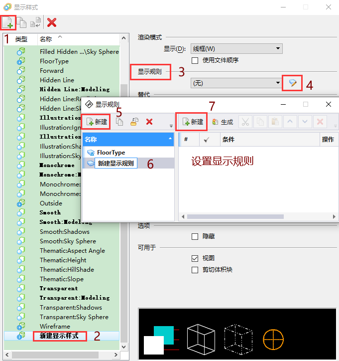 设置显示规则进行模型的显示。