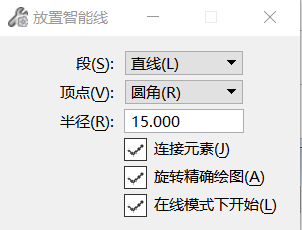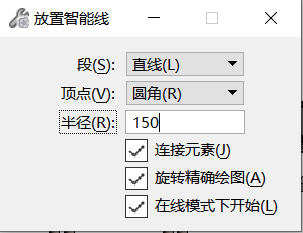 绘制智能线,顶点类型为圆角,移动并修改该直线。