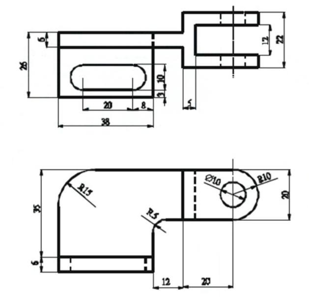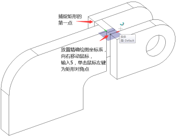 绘制矩形,用“拉伸构造实体”命令完成两耳板中间长方体的创建。