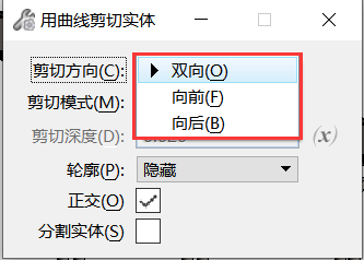 按曲线剪切实体>接受/拒绝(同时按ctrl键和数据按钮可迭择其他剪切轮廓)