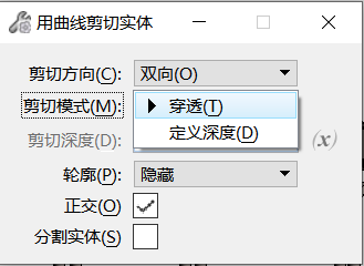 按曲线剪切实体>接受/拒绝