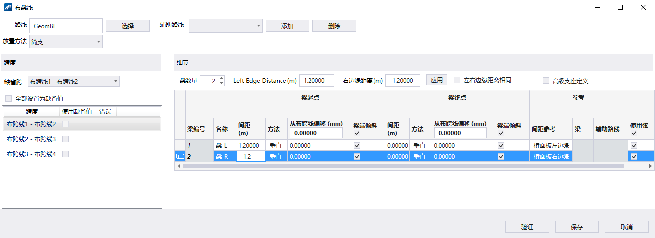 移、与布跨线偏移、盖梁长度自动调整等参数及材质与建造顺序进行设置后,放置到相应的布跨线上。