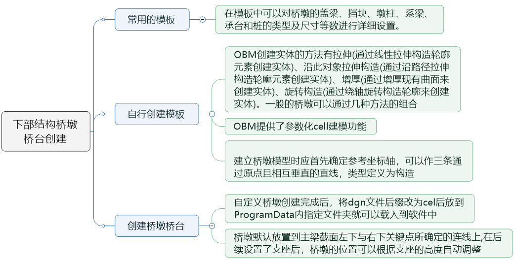 OBM为下部结构的桥墩桥台也提供了系列常用的模板,桥墩有单柱式、双柱式、多柱式和桩柱一体式等多