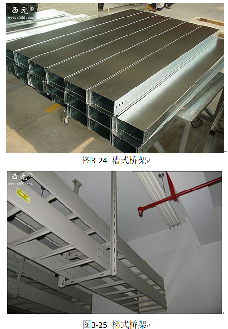 托盘式电缆桥架,是应用最为广泛的一种桥架设备。它具有很多优异的特点,重量轻,载荷大,造型美观、结构简单,而且安装方便等优点,它不但适用于动力电缆的安装,而且也适用于控制电缆的敷设等。如图3-25所示。