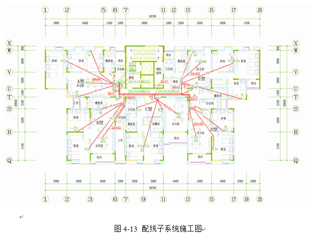 了解设计内容及设计意图,明确工程所采用的设备和材料,明确图纸所提出的施工要求,熟悉和工程有关的其他技术资料,如施工及验收规范、技术规程、质量检验评定标准以及制造厂提供的资料,即安装使用说明书、产品合格证、试验记录等。如图4-17所示(具体工程级施工图纸请参见国家计算机网络专业综合布线课程资源库网站)。