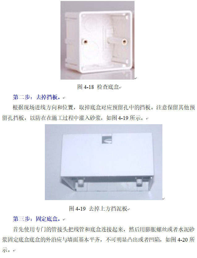 在底盒安装强前,检查底盒结构是否完整,安装螺孔是否合格,如图4-18所示。