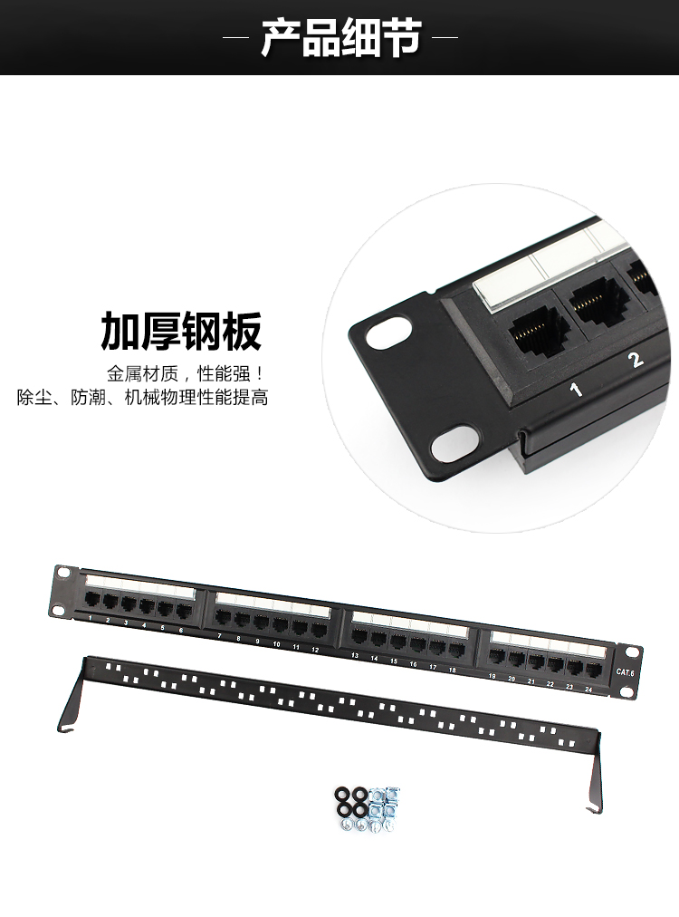 超五类非屏蔽RJ45接口网络配线架端接操作具体步骤:
