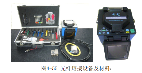 在做光缆熔接之前,需要准备以下工具和材料:光纤熔接机、工具箱、光缆、光纤跳线、光纤熔接保护套、光纤切割刀、无水酒精等,如图4-100 :