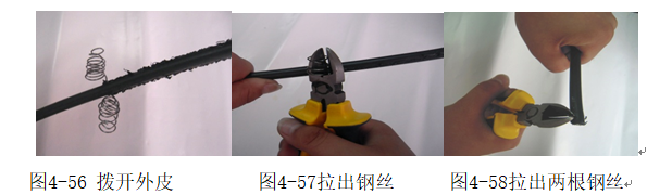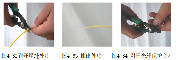 图4-59 拨开保护套 图4-60 抽出保护套 图4-61 完成开缆