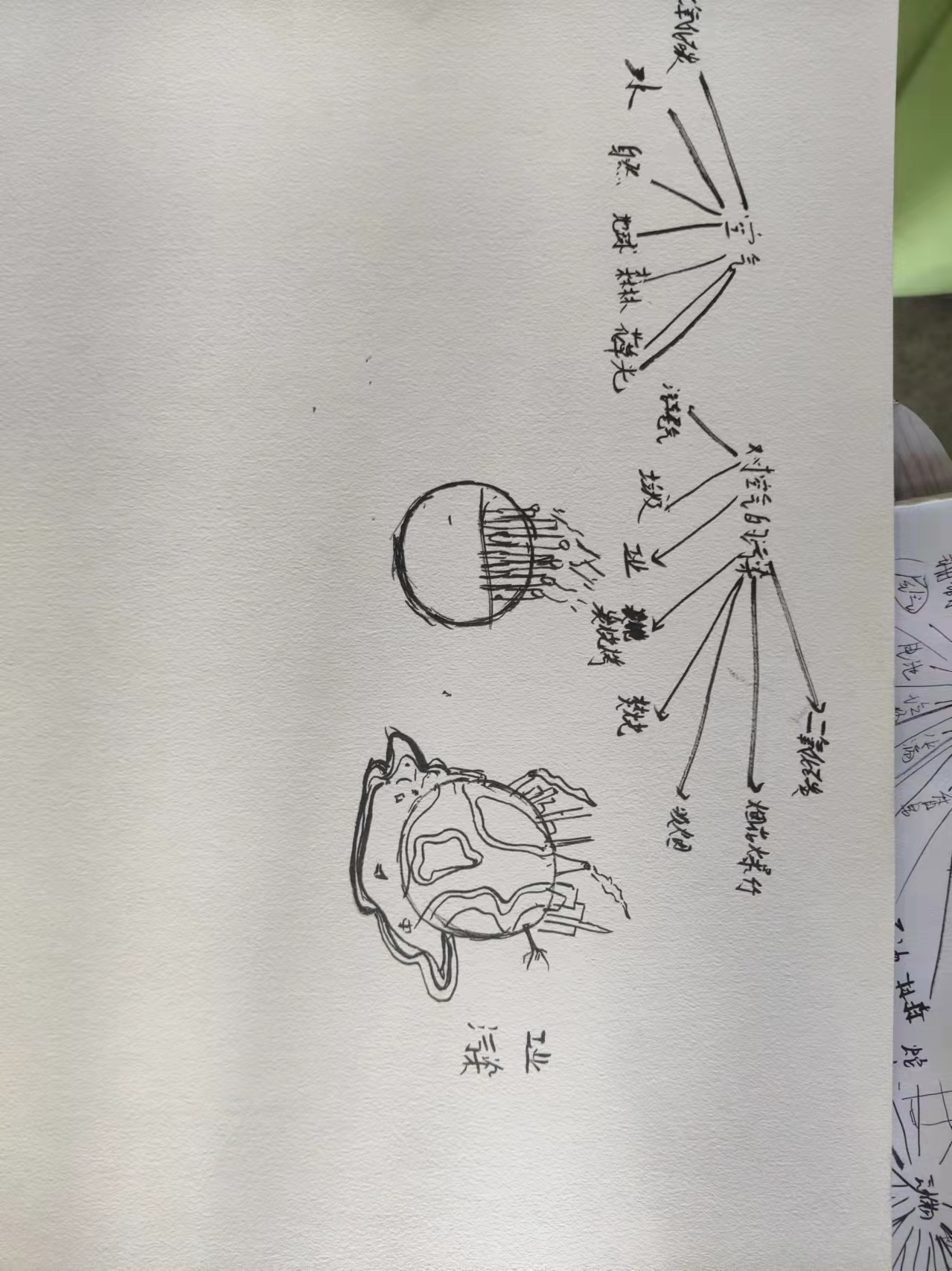 创作过程:1、创意启发——根据主题在速写本和纸上展开思维发散导图,利用a+b=c的创作思维模式,选择典型符号作为a和b,通过创新设计思维进行组合,选取最佳创意产生c的概念。