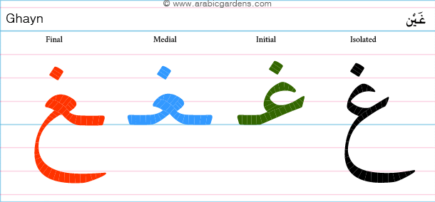 1. غ 的写法:
