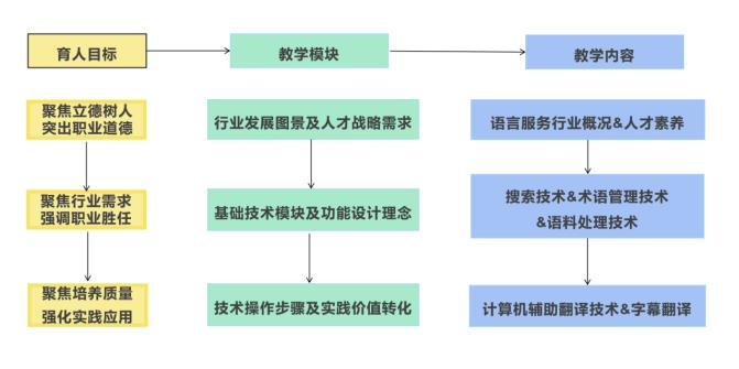 (三)素质目标:遵循行业标准和规范,具备译者工匠精神;提高技术思维以及技术伦理意识;培养争先服务国家和区域语言传播的复合应用型能力。