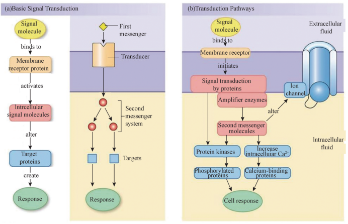生物细胞每时每刻都在接受来自细胞内外各种各样的信号,信号转导是生命活动的一种最基本和最重要的方式。各种信号调控着细胞的一切生命活动,引起机体各组 织器官的发育与衰老。细胞对胞外信号的反应就是细胞与体内外环境及细胞之间电信号、化学信号等的传递、识别及应答的过程。