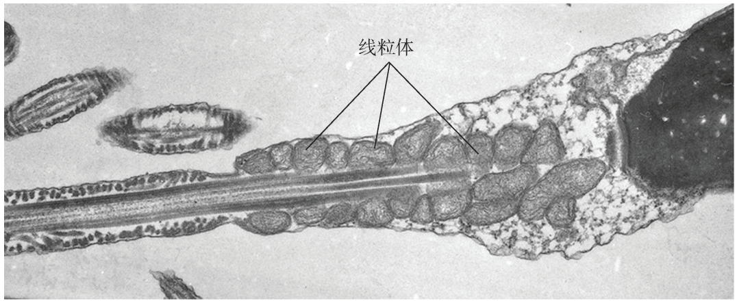 图5-1电镜图示人的精子细胞在线粒体沿精子细胞中有序、成簇排列