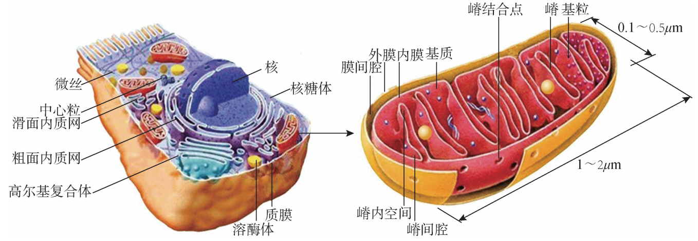 如脑、肾、骨骼肌、肝细胞等需能较高的细胞约含数千个线粒体,心肌细胞对能量的需求很高,线粒体的数量可占细胞总体积的50%以上。巨大变形细胞线粒体达50万个,单细胞鞭毛藻仅一个。