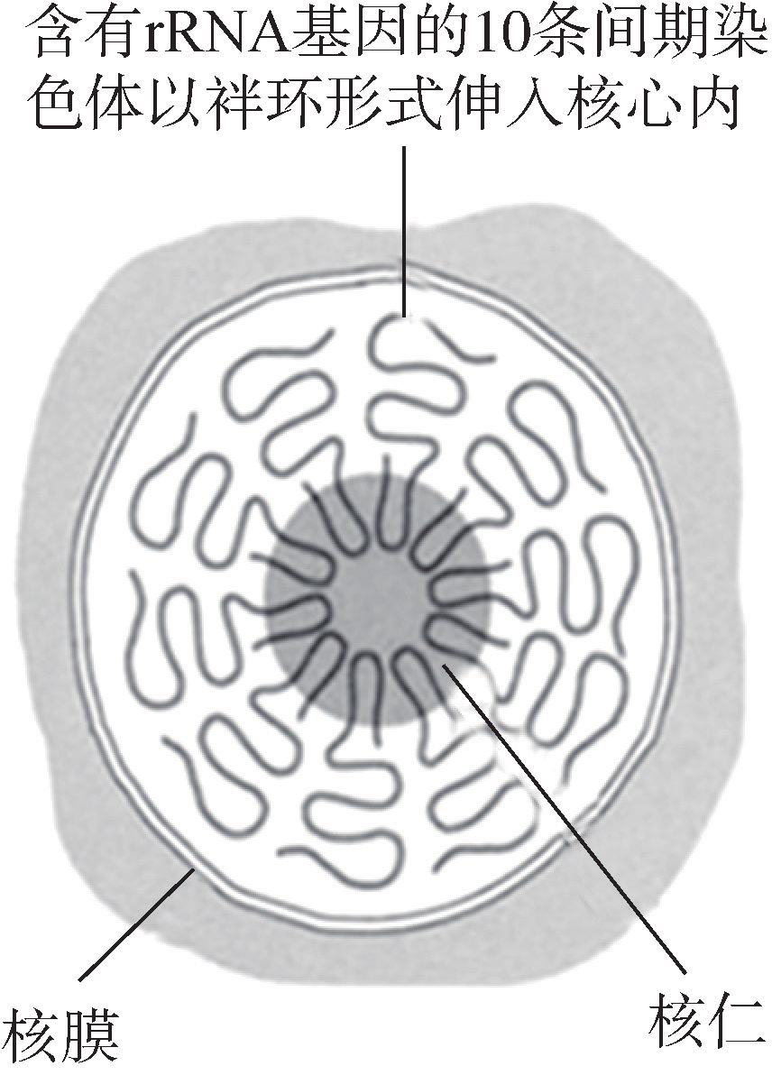 图 7G4G2 人的间期细胞核仁组织区及 10 条染色体的 rDNA 袢环