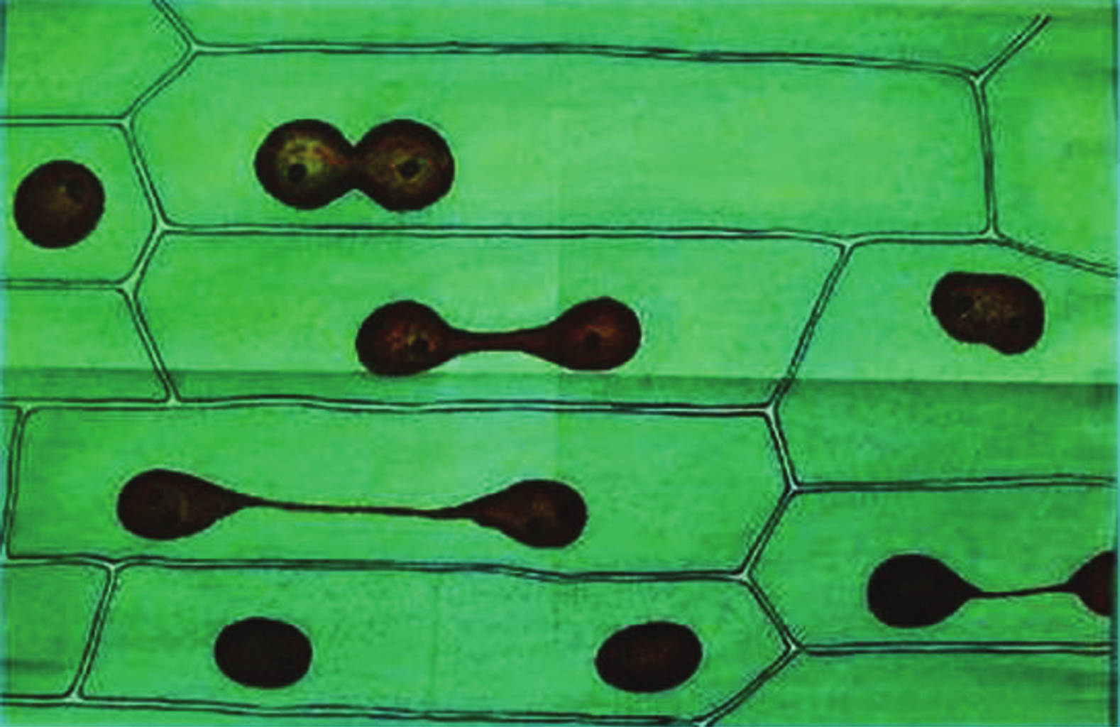 无丝分裂在低等植物中普遍存在,在高等植物中也常见。高等植物营养丰富的部位,如胚乳细胞、表皮细胞、根冠等,无丝分裂很普遍。人体大多数腺体都有部分细胞进行无丝分裂,主要见于高度分化的细胞,如肝细胞、肾小管上皮细胞、肾上腺皮质细胞等;蛙的红细胞、蚕的睾丸上皮细胞均进行无丝分裂。无丝分裂周期包括4个时期(图8G1G1):