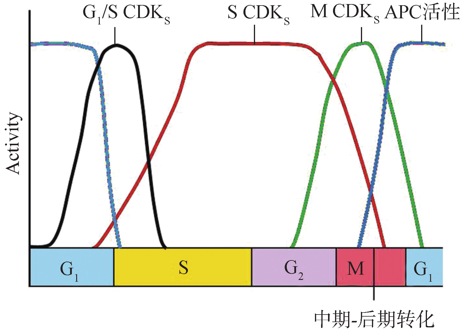 M期检验点,又称为纺锤体组装检验点,其作用是监测纺锤体形成过程中染色体不正确的组合,在有丝分裂中期引发周期阻滞,以阻止分裂后期启动和胞质分裂。几种哺乳动物M期检验点蛋白已被广泛研究,如Mad、Bub和Ndc80蛋白在微管黏附作用缺陷时被激活,其通过抑制后期促进复合物(anaphasepromotingcomplex,APC)的泛素连接酶活性,阻止分裂中后期的周期进展,避免染色体不正确地分离。