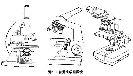 目前常用的显微镜为双筒倾斜式显微镜 (图 2-1),其主要结构一般由机械、照明和光学三部分构成。