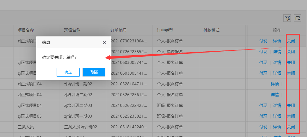 通过关闭按钮,可关闭订单的进行。