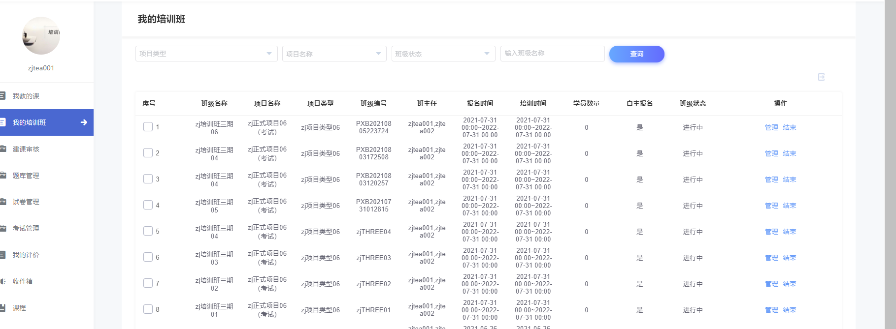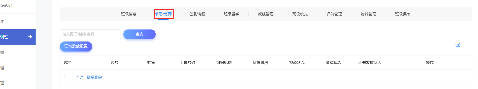 此模块是班主任角色对应的模块。班主任进入我的培训班进行班级信息、学员信息、签到、督学、成绩及收支、评价、物料和课表的查看和管理。