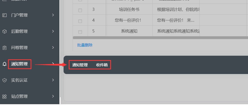 通知管理包括通知管理和收件箱,该模块可以进行通知的发送和撤回,查看本账号收到的通知情况。